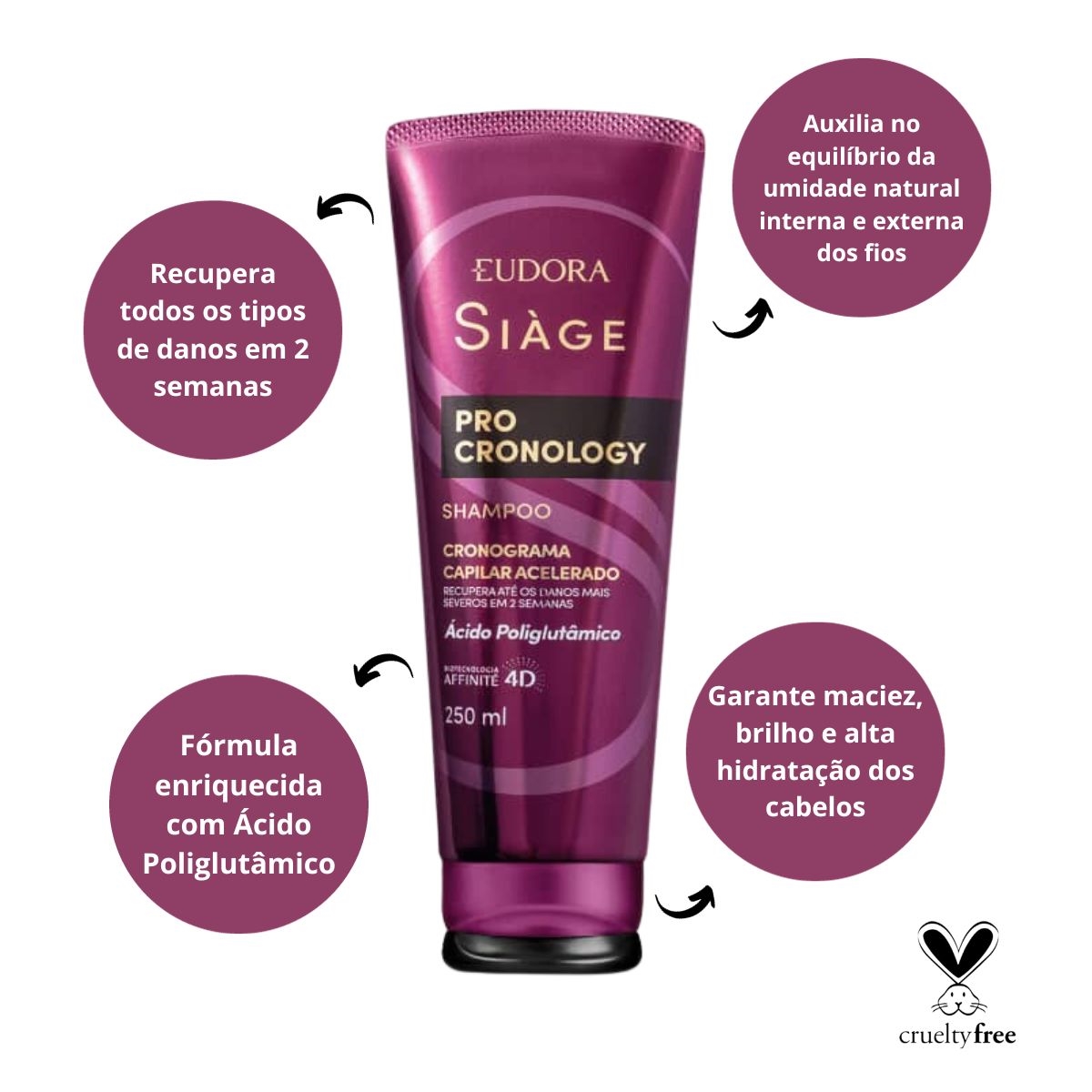 O Shampoo Siàge Pro Cronology remove as impurezas sem ressecar os fios e os deixa prontos para receber o tratamento.